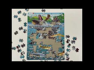 Sild er en smakfull rett for både mennesker og dyr. Mange fugler, dyr og fisk jakter på sild for å få seg en matbit. En sildestim er en stor gruppe sild som svømmer tett sammen. Én stim kan inneholde tusenvis av sild, og de beveger seg raskt når knølhval svømmer rett gjennom gruppen med munnen vidåpen. Dette puslespillet har 140 brikker og er litt utfordrende for både barn og voksne, siden brikkene er like. Sørg for å studere bildet nøye for å memorere detaljene før du fjerner brikkene. Da blir det lettere å sette dem sammen igjen, og du kan trene hukommelsen din samtidig.
