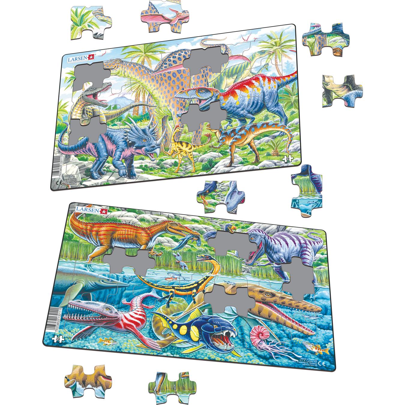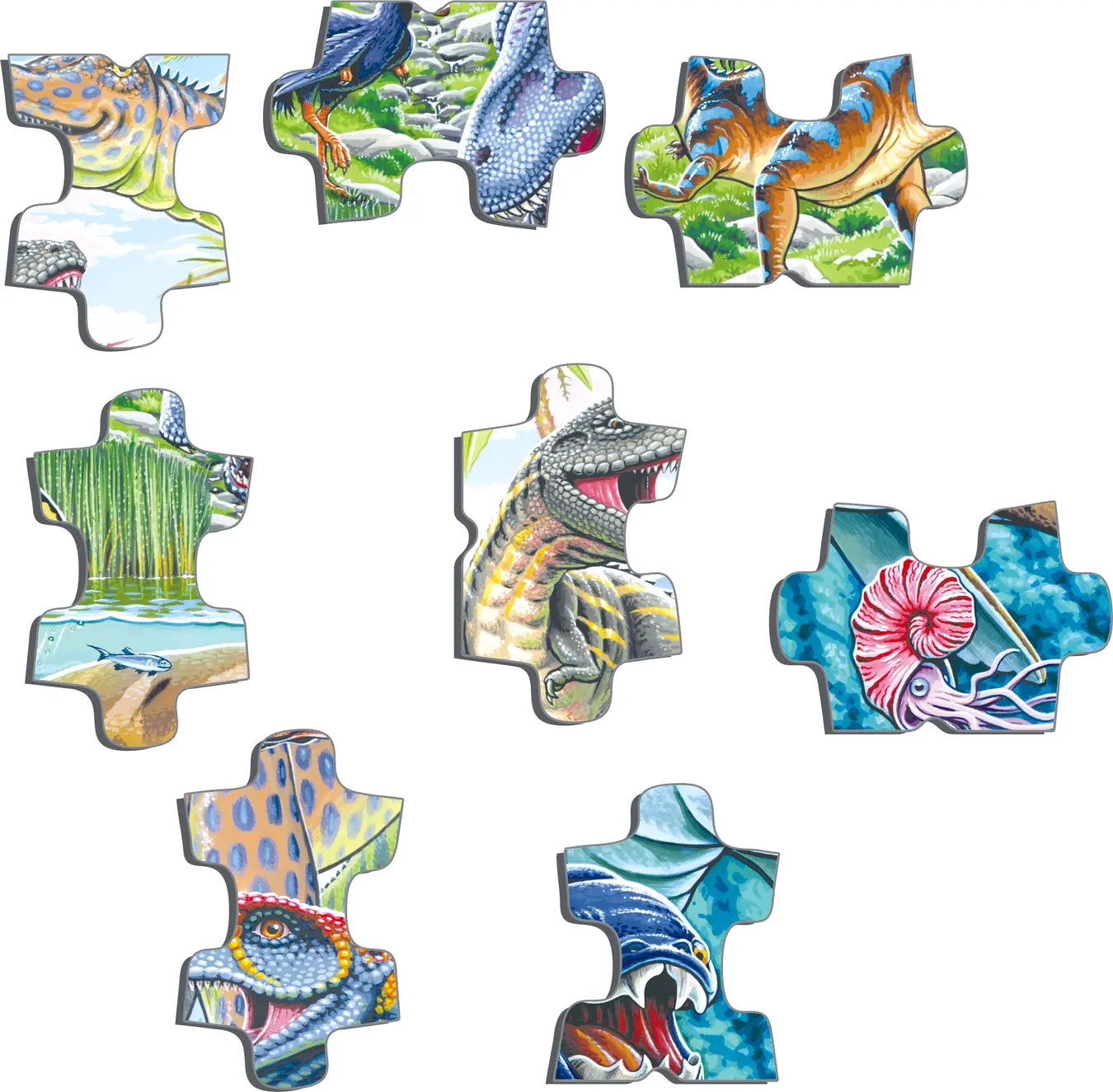 På dinosaurenes tid var livet på jorda veldig forskjellig fra livet som det er i dag. På ett av disse to MIDI puslespillene ser du dinosaurer som var så store at de spiste blader fra toppen av store trær. Du ser en giganotosaurus og en tyrannosaurus rex som var brutale kjøttetende dinosaurer. På ett av puslespillene ser du dyr som levde ved kysten og i havet, som mosasaur som var en gigantisk marin øgle.