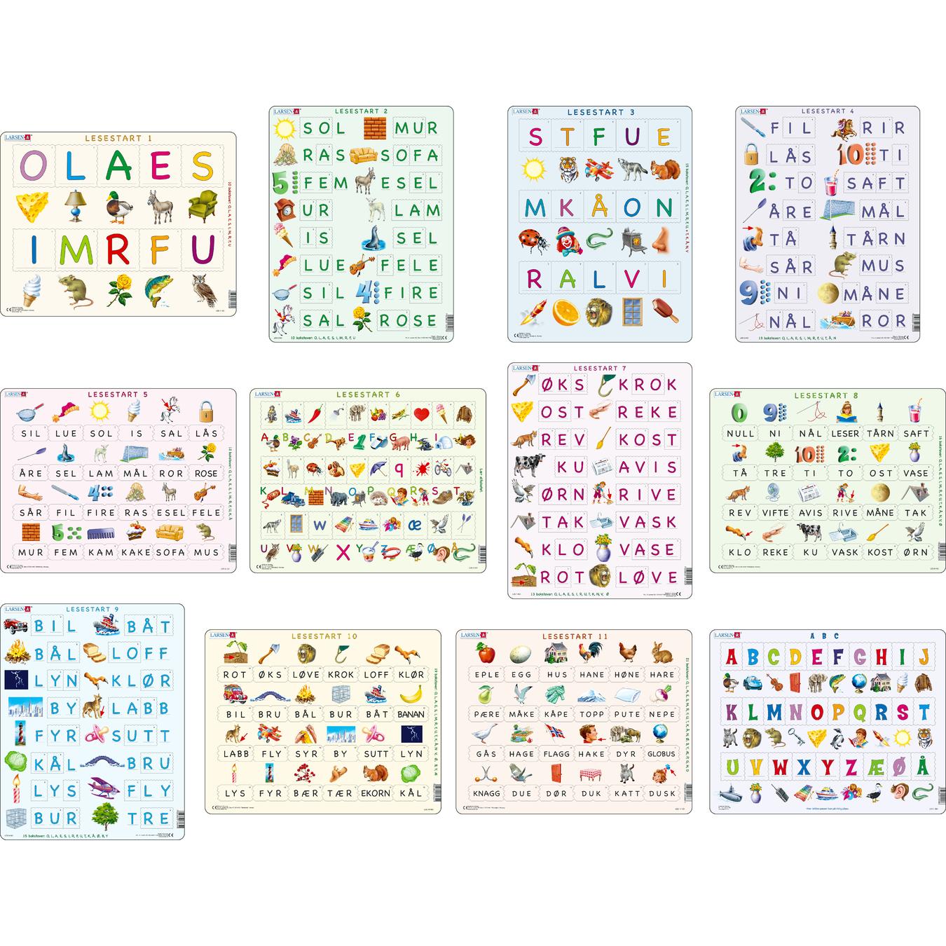LESESTART er en pakke med 12 puslespill som er utformet for å hjelpe barn med å komme i gang med å lære å lese så snart de vil. Spillene er selvstyrte og kan spilles alene eller i grupper. De kan prøve å gjøre feil, og når brikkene faller på plass, vet de at svaret er riktig.