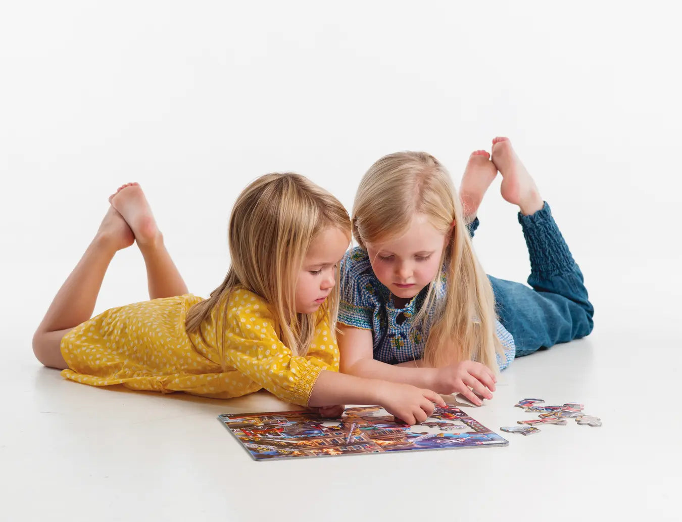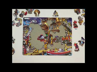 «Nee-naw, nee-naw», lød lyden av brannbilene mens de kjørte gjennom byen for å slukke denne store boligbrannen. Dette grafiske puslespillet med 45 brikker viser virkelige helter (brannmenn) i arbeid. 15 brannmenn omringer bygningen og prøver å slukke brannene. I dette naturskjønne og illustrerende puslespillet finner du to store brannbiler, bygninger side om side, et redningshelikopter som svever over bygningen, en jolle, en dame med en bøtte full av vann, vann fra slanger som sprutes i hver etasje, ild som flammer fra hvert vindu, en redningshund med hjelm, to brannmenn i jollen med et førstehjelpsskrin og grå røyk som omslutter himmelen. Dette puslespillet er rettet mot litt eldre barn som kan bruke sine visuelle ferdigheter til raskt å identifisere de manglende brikkene.