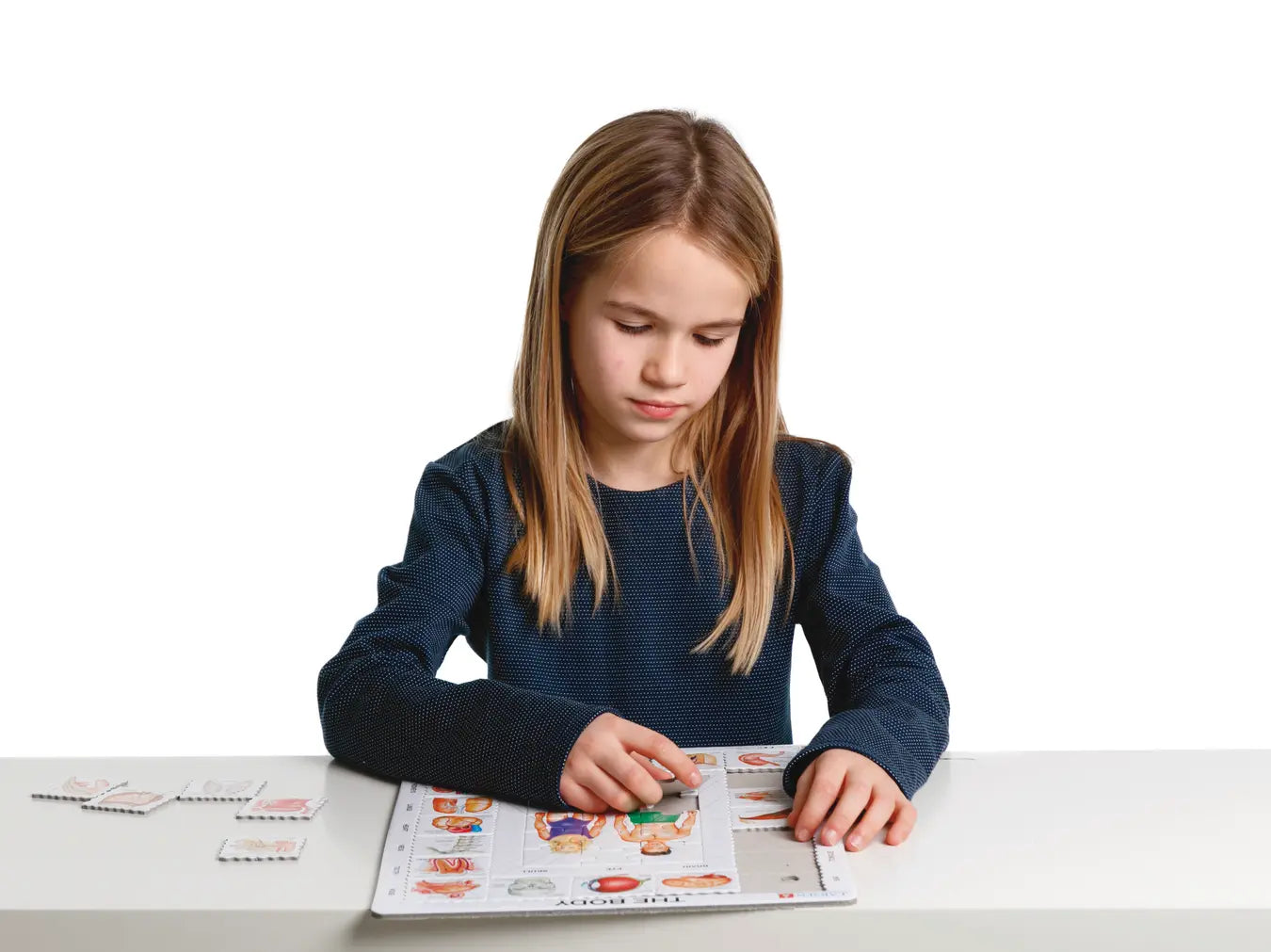 «Hode, skuldre, knær og tær ... ribbein og bein!» Bli med på all moroa og fullfør denne underholdende doble utfordringen! Du lærer alt om menneskekroppen og dens organer på kort tid! Rundt den ytre rammen finner du 20 puslespillbrikker med forskjellige kroppsdeler på hver brikke. Rammen viser riktig navn på kroppsdelen, med piler som fører til kroppsdelen den tilhører. På det indre puslespillet finner du 15 tradisjonelle, sammenlåste brikker som utgjør illustrasjonen av en gutt og en jente. Dette pedagogiske puslespillet kommer komplett med 35 brikker og passer best for litt yngre barn, klare til å lære om menneskekroppen.