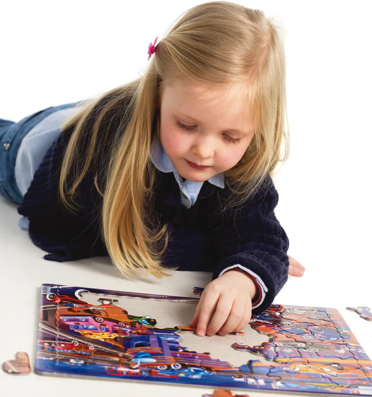 Dette tolkende puslespillet demonstrerer prosessen med bygging og renovering av et hus. Det viser snekkere, rørleggere, elektrikere, malere, murere og gartnere i arbeid. Du finner både en blanding av barn og voksne som jobber med og rundt huset. Puslespillet leveres komplett med 62 brikker, med en målgruppe på barn i den eldre aldersgruppen. Det gir barn en viss forståelse av ulike jobber i byggebransjen. Skreddersydde puslespillbrikker inkluderer verktøyformer som en hammer, en skiftenøkkel, en hjelm og en pensel. Puslespillet inkluderer også enkle dyr som en katt, en hund og en liten fugl som fører tilsyn med arbeiderne på vakt. Dette fengslende puslespillet vil lett fange oppmerksomheten til både yngre og eldre barn.